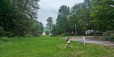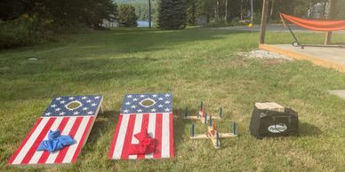 We offer several outdoor games including corn hole, ring toss, giant Jenga blocks, and a football. A basketball hoop and can jam frisbee game to be added shortly.