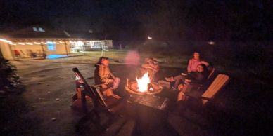 Hardly nothing gets the young ones excited more than Smores! Our 36 in wide stone fire pit has partial lake and mountain views while relaxing on our 5 composite Adirondack chairs. All supplies are stored in the garage while some are kept in the storage cube by the fire pit/